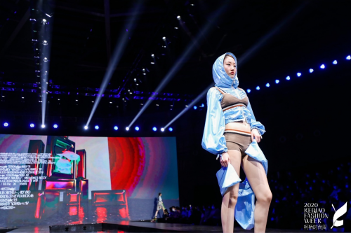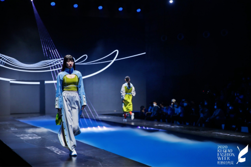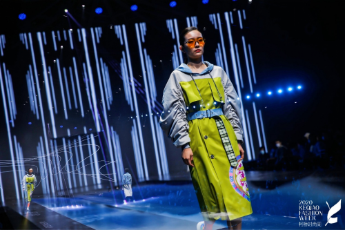 本次发布会的主题是“纤系未来”,是与西安工程大学柯桥西纺研究院合作设计的款式。后疫情时代,经济严峻,种种未知性,将原本存在的恐惧情绪放大,使恐惧情绪在全球范围内迅速蔓延开来,因此功能性环保在时尚界内兴起。异素材拼接风潮能将人们的焦虑畏惧以最直观的视觉方式体现出来,以积极主动的正能量搏击恐惧。