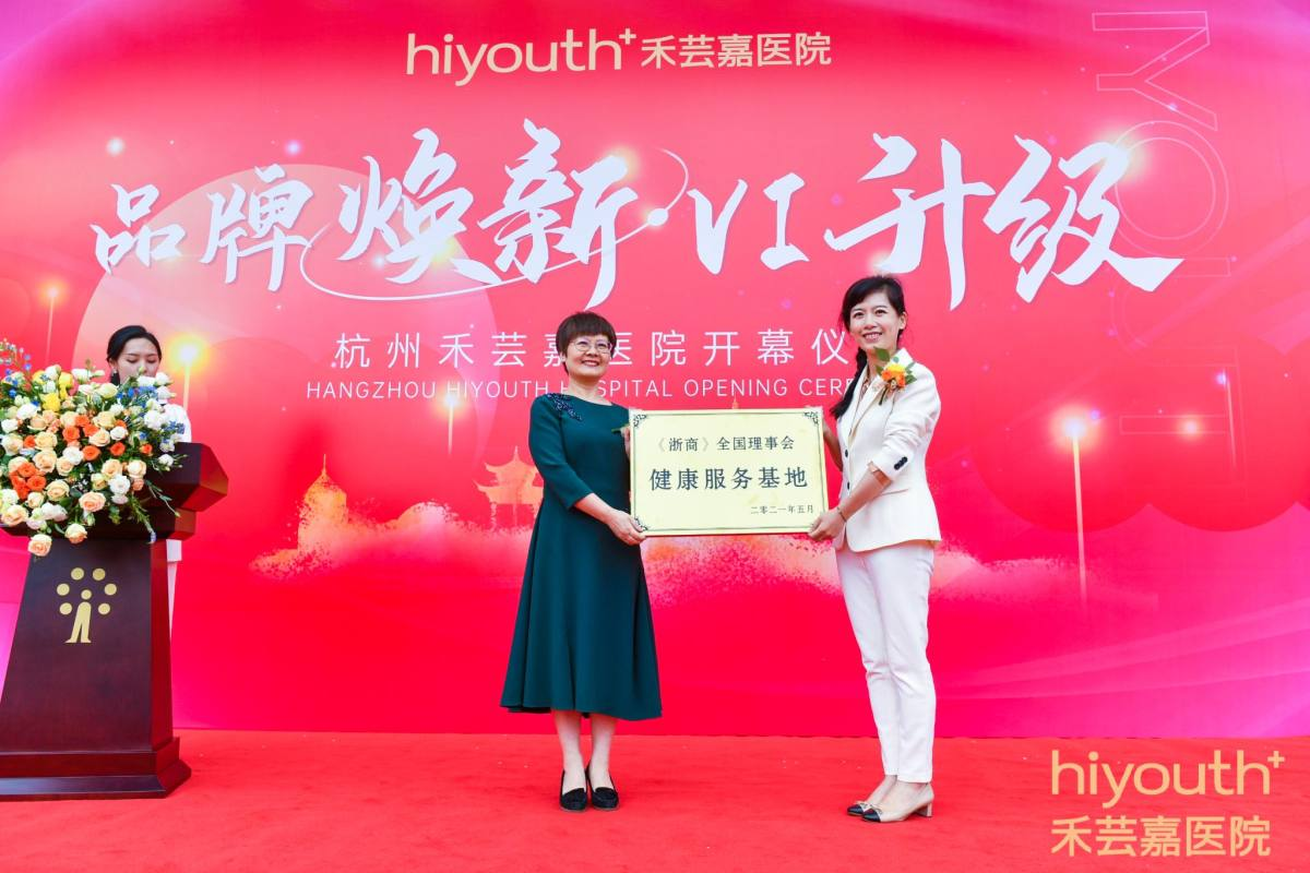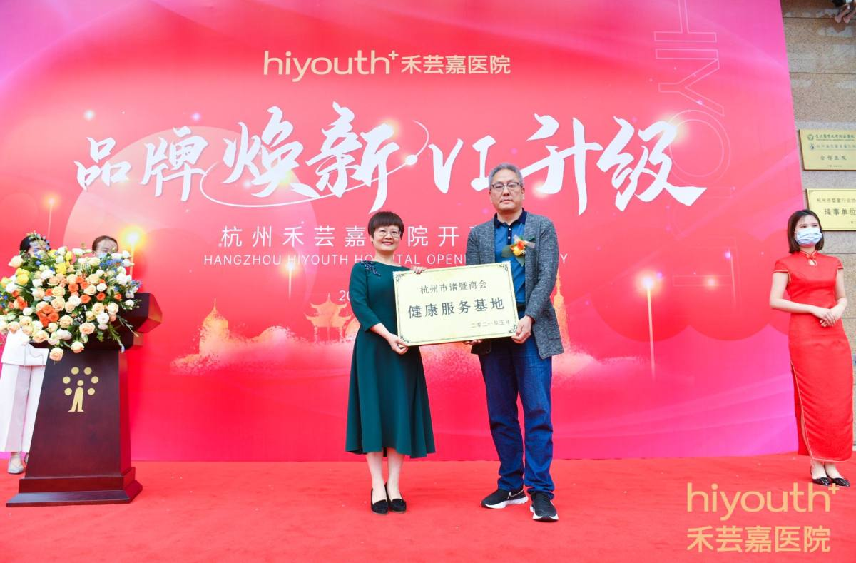 会上,杭州市诸暨商会秘书长为禾芸嘉医院授牌了杭州市诸暨商会健康服务基地。