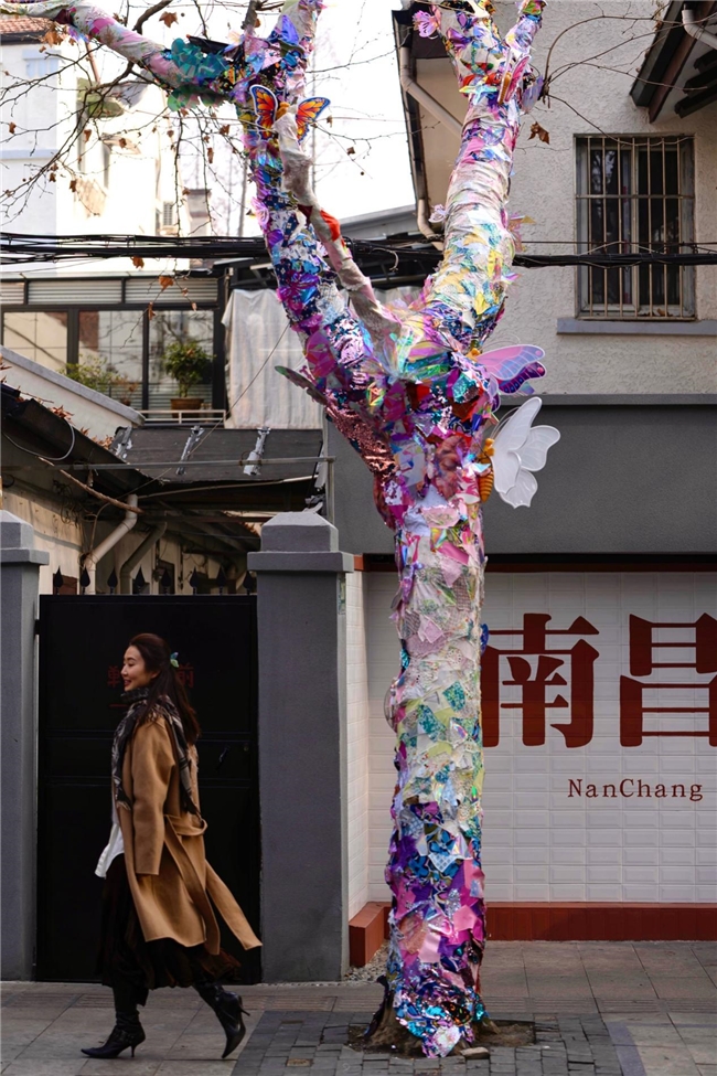 两件作品,同一叙事逻辑:让祝福从蝶翅的纹样中生长为乐章,让蝴蝶从树木的肌理中生长为气象。 从开端到路口,从一棵树到一座花园,艺术沿着南昌路完成了一次完整的呼吸。