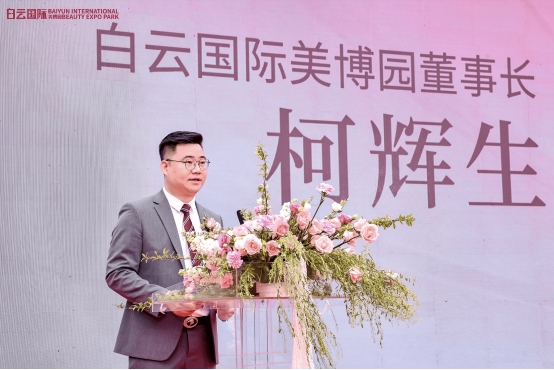 随后,白云国际美博园董事长柯辉生介绍了园区发展规划。他表示,园区将围绕“打造美妆全产业链国际化服务平台”的核心定位,整合原料供应、生产代工、品牌孵化、检测认证、跨境出海等十大功能中心,致力于构建从研发到市场的全周期服务体系。未来将持续举办趋势发布、技能培训、资源对接等活动,助力企业降本增效、协同发展。