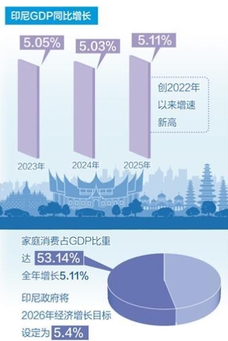 印尼中央统计局官方数据显示,2025年印尼GDP同比增长5.11%,创三年来最高增速。全年GDP总量达1.403 万亿美元。此外,印尼政府已将2026年经济增长目标设定为5.4%,显示出政府对经济持续向好的信心。