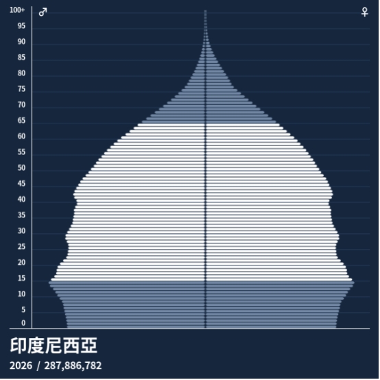 印尼是全球第四人口大国,总人口约2.84亿,其中劳动年龄人口占比近68%,年龄中位数仅30.4岁。整体呈现出显著的年轻化特征,为劳动力供给与消费市场提供了持续支撑,也为经济增长注入了长期动能。