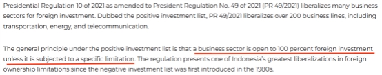 目前,纺织业被印尼政府列为劳动密集型优先发展产业,并依据《2021 年第 10 号总统条例》的《投资优先清单》政策,对外资全面开放,允许外商持有 100% 股权,无需与本地企业合资。