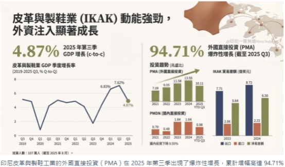 2025年第三季度,鞋业外商直接投资同比大幅增长94.71%,在资本加速流入的带动下,行业产能与出口规模同步提升。随着海外订单快速增长,上游原材料供给压力逐步显现,高品质皮革、功能性鞋材及轻量化箱包材料等细分品类需求持续走强。