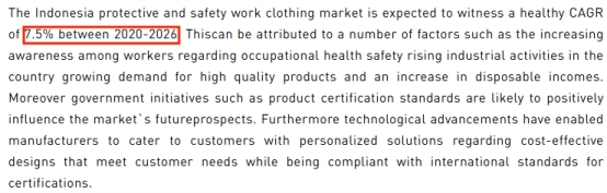 另一方面,制造业规模持续扩张及安全生产标准日益趋严,带动工业防护服需求增长,在2020-2026年间预计以7.5%的年复合增长率发展,工业安全防护服、特种作业防护等功能性工装需求稳步上升,对产品性能与合规标准提出更高要求。