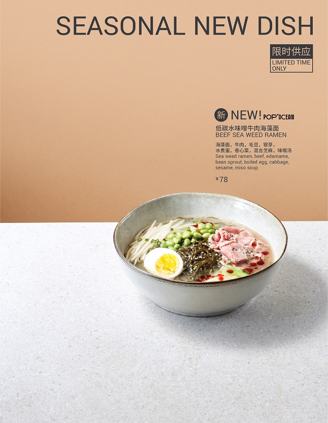 POPOCEAN首创深海0脂海藻面,Wagas以POPOCEAN深海0脂海藻面为原料,针对“中国胃”推出了超牛新品:低碳水味噌牛肉海藻面。助力消费者享瘦假期,轻盈过新春。