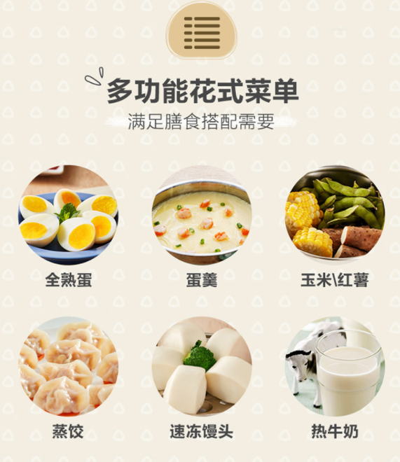 煮蛋器除了可以煮蛋之外,还可以做各种花式早餐,例如蛋羹、各种包点、红薯玉米、蒸饺、热牛奶等功能。用煮蛋器蒸蛋能够保持鸡蛋营养、富有弹性、无腥味、不会爆裂。不粘附涂层发热盘清洗方便,煮蛋速度快不需人照看。