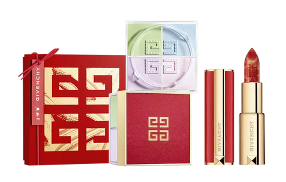 纪梵希Givenchy红运金禧明星彩妆套装,明星四宫格散粉百搭肤色,清新匀净,N888红金限定版口红,助她如锦鲤般谱就一年鸿运。