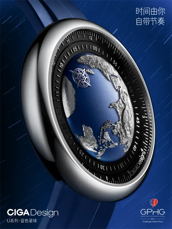 众所周知,CIGAdesign玺佳U系列·蓝色星球历经十年打磨沉淀,在设计理念上跳脱200年传统表盘格局视角,独创无指针的非同步追随机芯技术,搭配静态时钟盘和动态分钟盘呈现在同一表盘的创新设计,打开了读时方式的全新节奏,也成为了真正意义上的国表之光。当约定俗成的分针秒针公式消失过后,人生时间界限也被拓宽,可以去探寻人生新的时区,去感受“你的时间只有你懂”的人生体验。