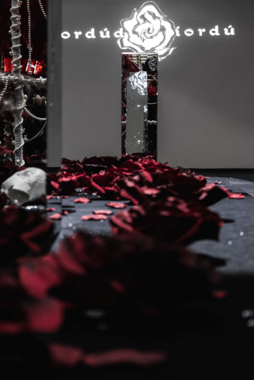ordúdíordú设计师服装品牌再度亮相上海时装周精美的牢笼似美丽的幻象、玫瑰散落于满地的黑暗,破碎的镜面、静穆的石像,弥漫着沉寂与浪漫。这是ordúdíordú二次亮相上海时装周品牌秀场,于神秘幻境中呈现了一场关于冲破束缚探索自由的表达。