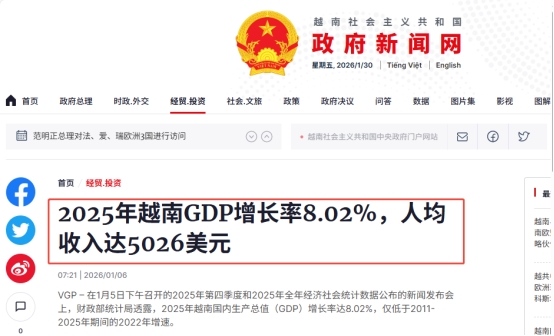 根据越南统计总局发布的官方数据,2025年越南GDP同比增长8.02%,为东南亚最高之一。人均GDP首次突破5000美元,标志着越南正在迈入中等偏上收入国家行列。这意味着,越南从“够用就好”进入了“想要更好”的阶段。