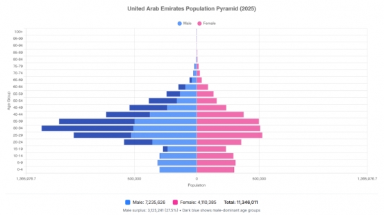 这种消费活力背后,是极具优势的人口结构。2025年阿联酋总人口约1130万,整体年轻化明显,劳动年龄人口占比高、抚养压力低,再叠加高度国际化的人才与居民构成,使市场既有购买力,也有对新产品、新品牌的快速接受度。