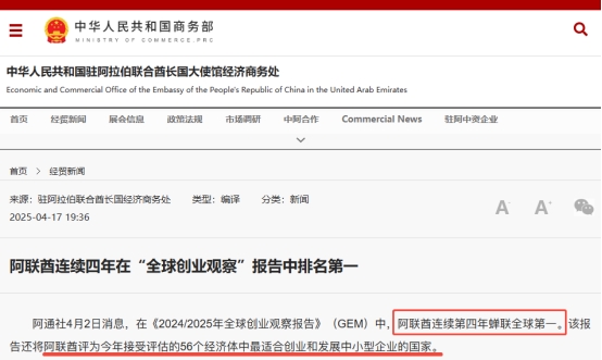 阿联酋政府推行开放且国际化的营商政策,通过监管改革强化对外资企业的吸引力。该国在全球创业环境评估中长期名列前茅,在对创业支持、融资便利、监管负担等多个指标上表现优异,被视为全球最适合创业和中小企业发展的国家之一。