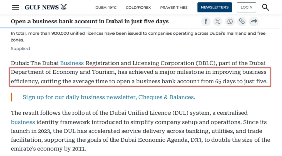 近年来推出的统一许可制度(Dubai Unified Licence),通过数字化统一许可平台整合银行、政府服务和贸易等流程,将开户时间从大约65天缩短至约5天,大幅提高便捷性与透明度。