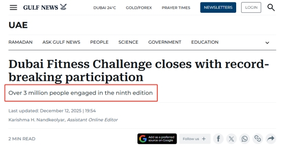 近年来,阿联酋居民的健康意识显著提升。根据报道,2025第九届迪拜健身挑战赛共吸引了超过300万人参与,再创新高,自2017年首届以来参与人数增长了244%。